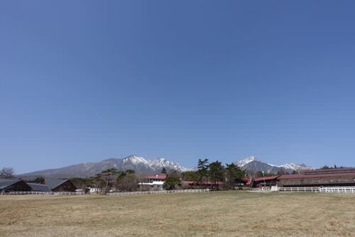 少し霞んだ青空に大きな八ヶ岳。近くではヒバリが歌い、ムクドリが動き回っています。北杜市三分一湧水付近の7:43現在の気温は6℃。今日も暖かくなりそうですね。